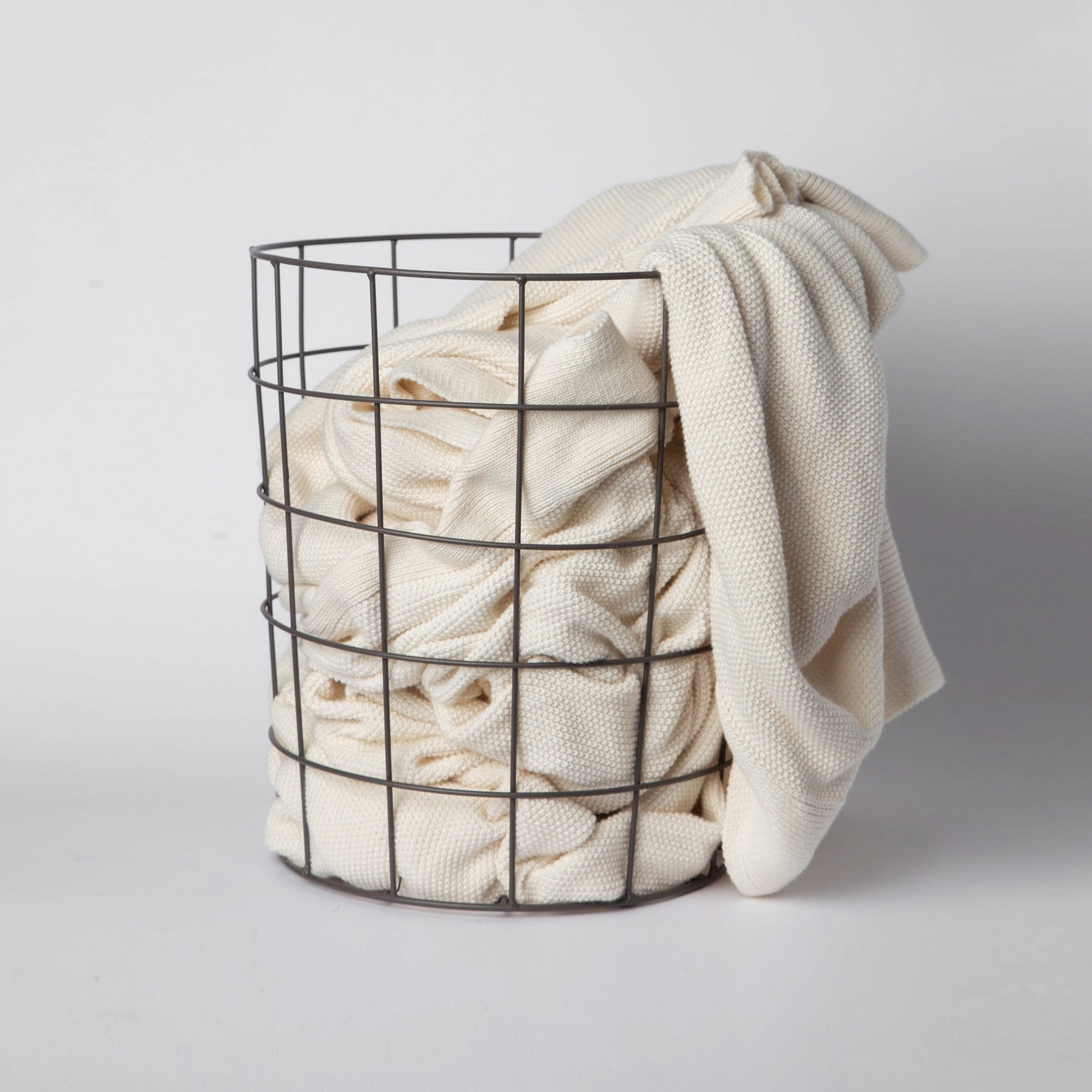 Grey round wire storage basket. Featuring a wired construction, this metal storage basket helps you see through your essentials with ease.