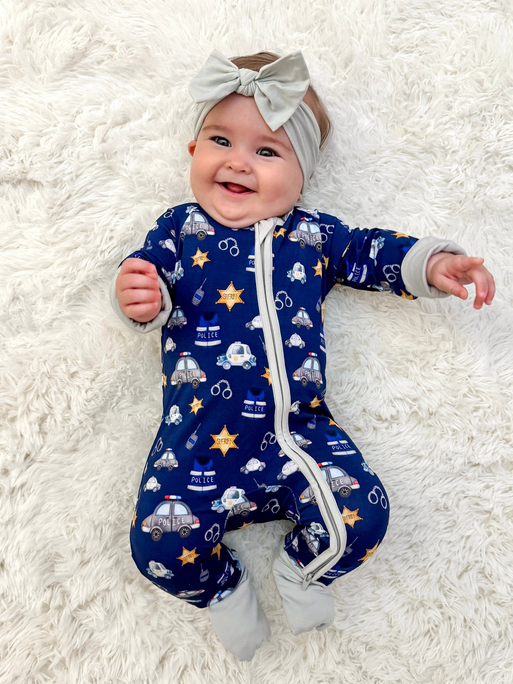 This exceptionally soft, 95% bamboo 5% spandex zippy features two-way, gray colored zippers, convertible hand and feet cuffs all the way up to size 18/24M and is made from 240gsm buttery soft fabric.