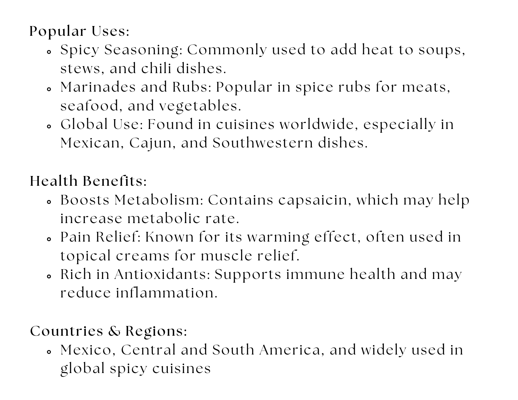 Cayenne pepper is a hot, spicy powder made from ground fried cayenne chili peppers.