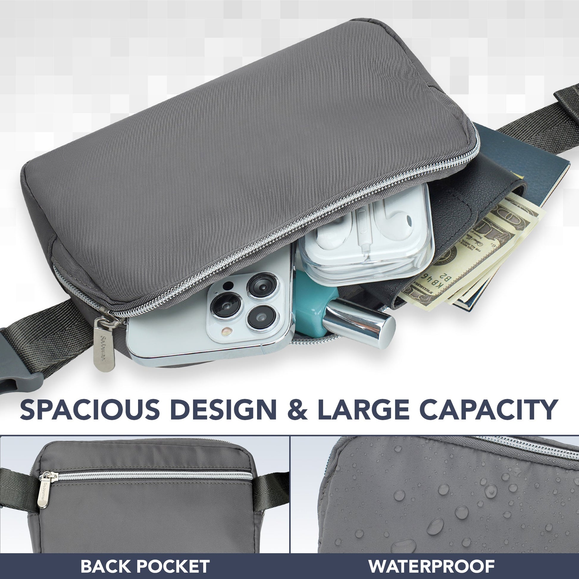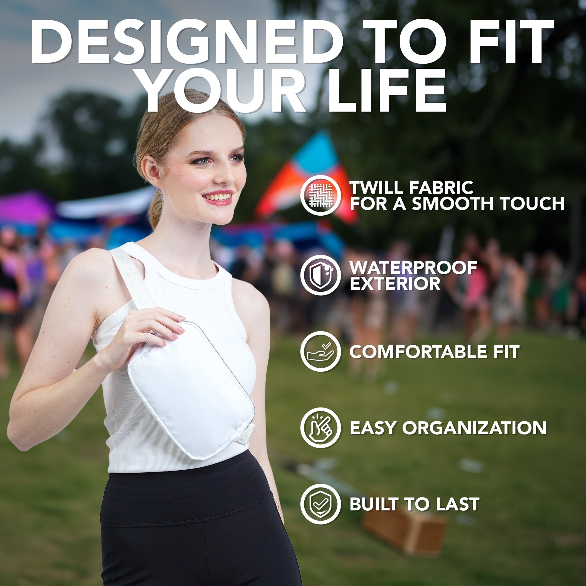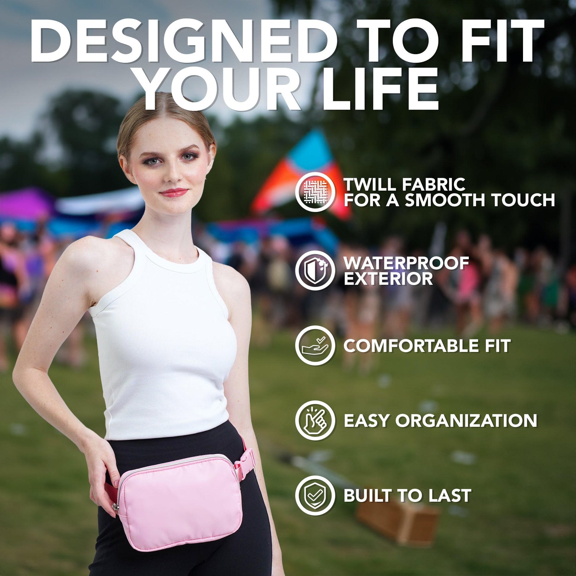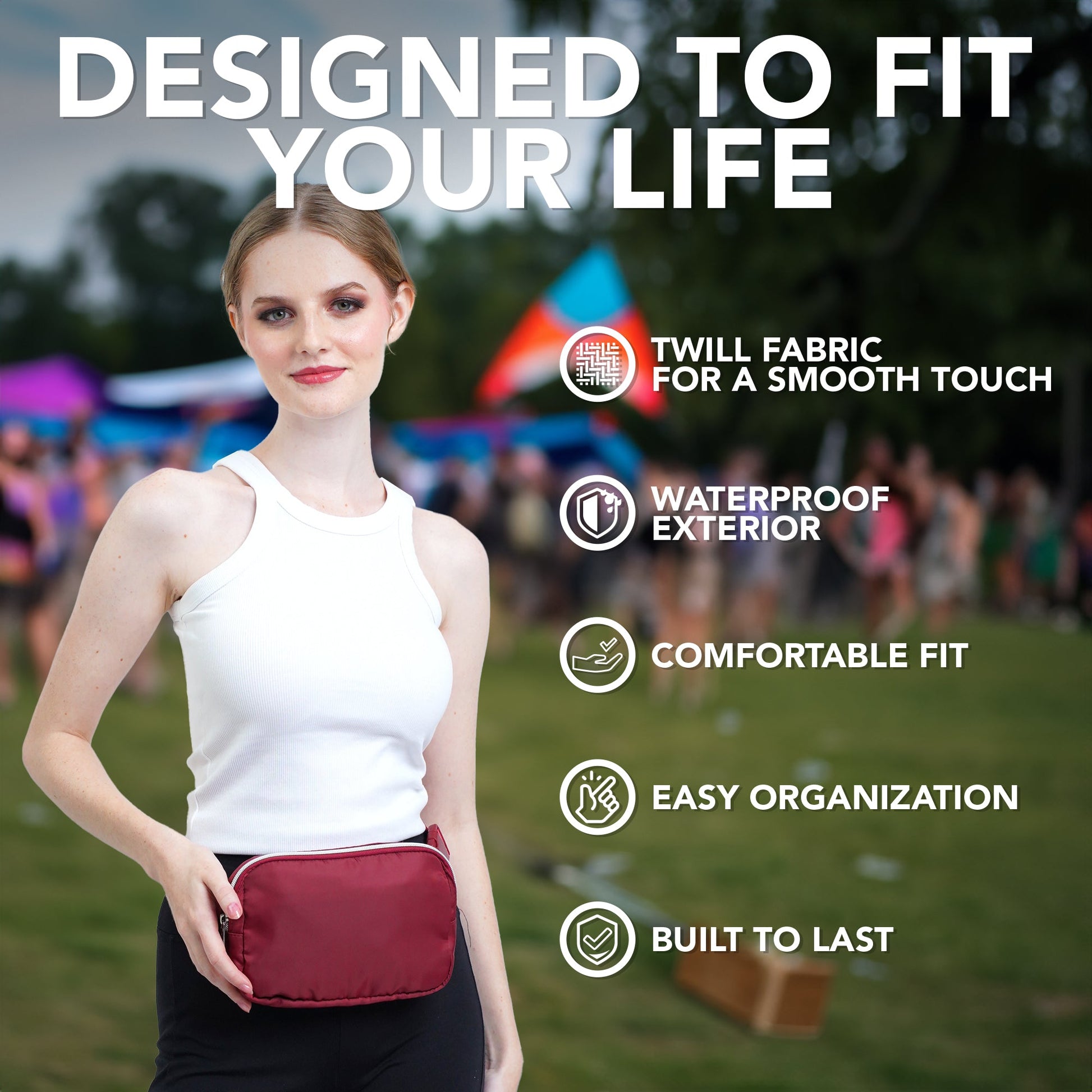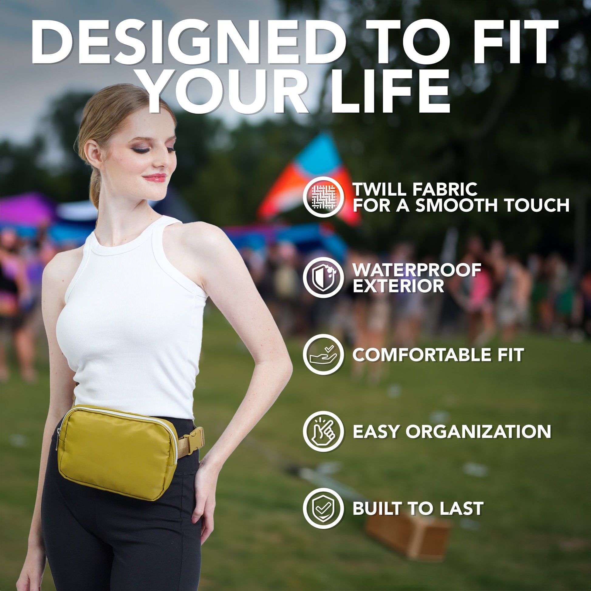 - DURABLE CONSTRUCTION - Our fanny pack crossbody bags for women is made from a durable water resistant twill fabric with enhanced stitching, adjustable belt and premium zippers to last the test of time