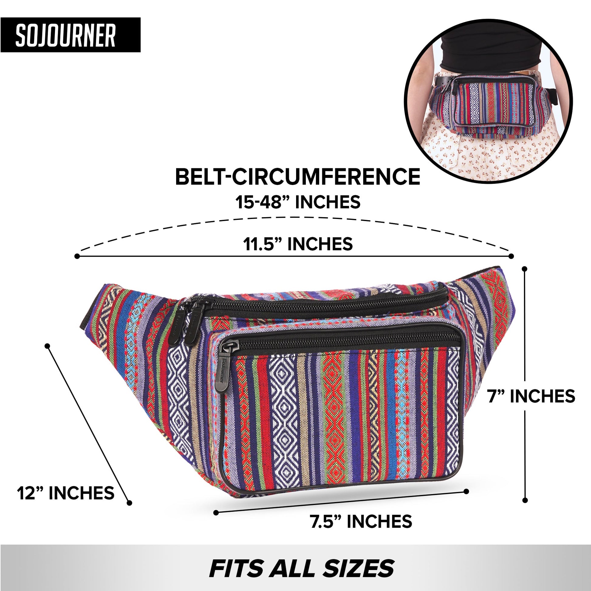 - SIZE - "11.5 x 7 x 4 - Our fanny pack is a larger size and makes a great fanny pack for men, women or kids.
