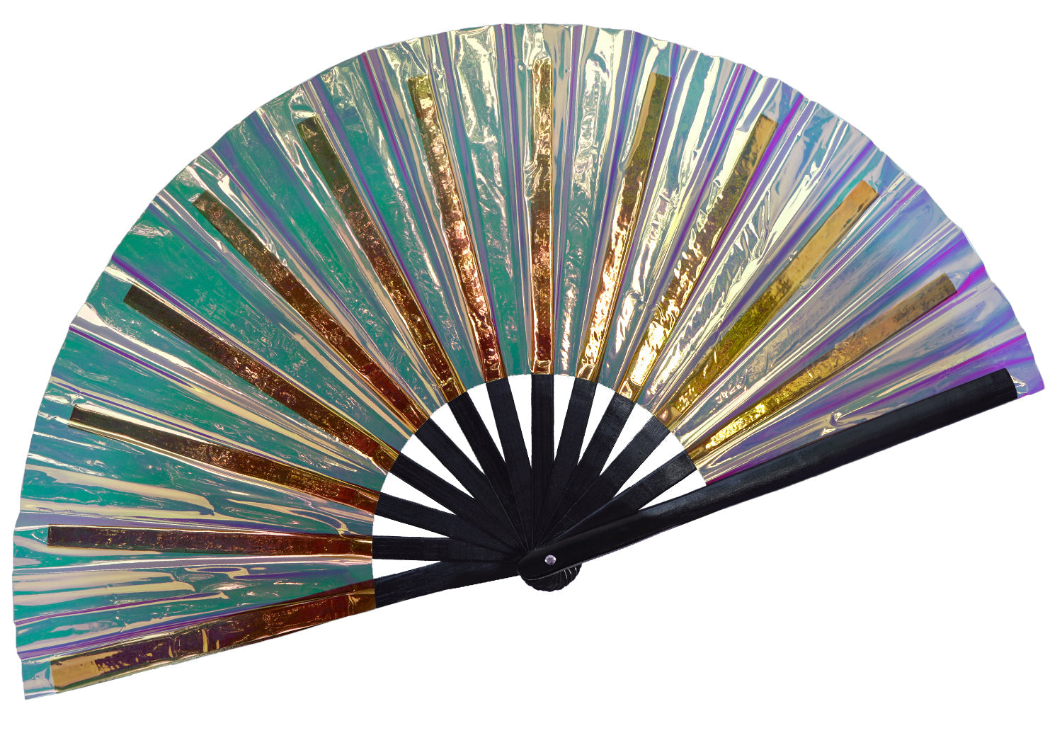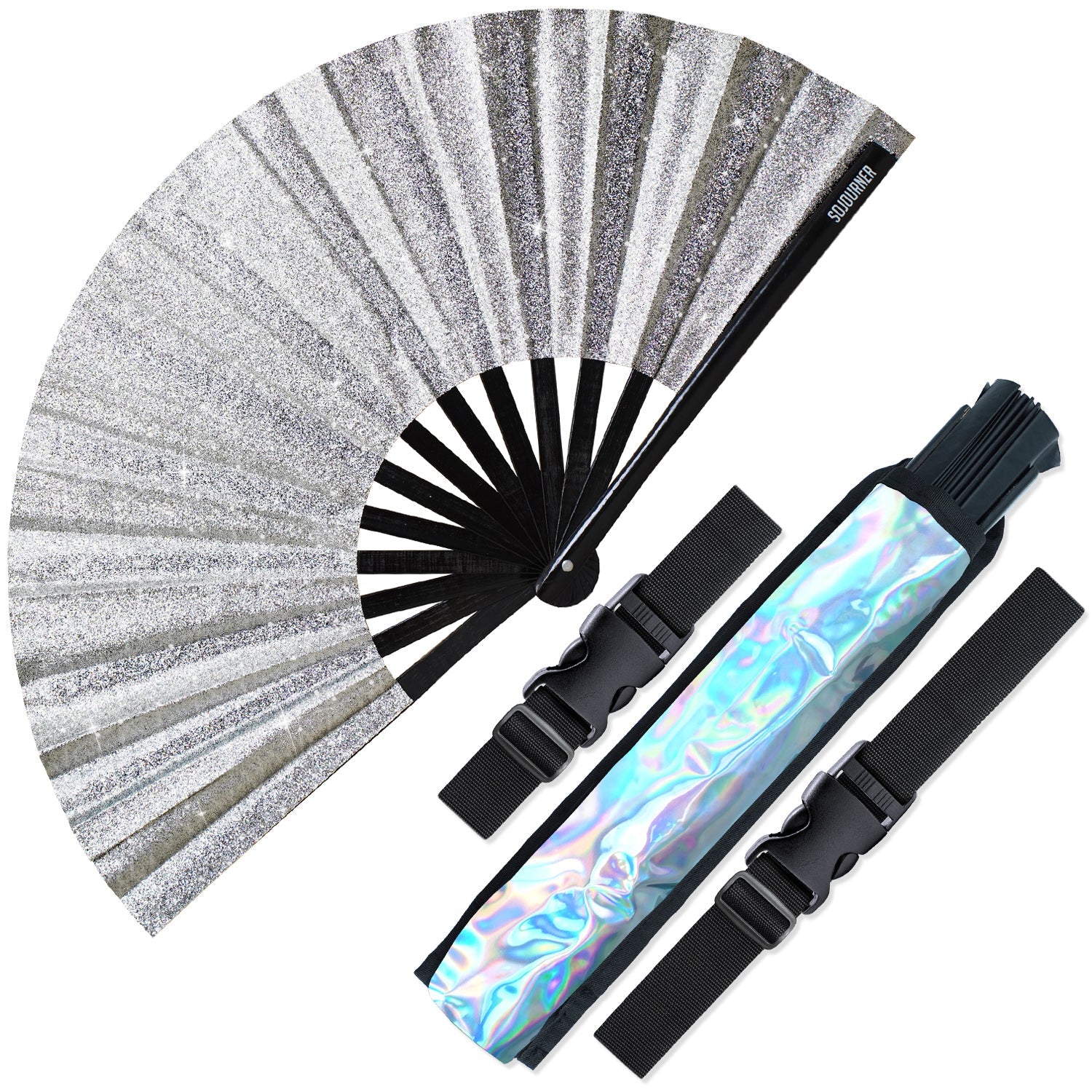 Large Folding Fans for Festivals, Drag Queen & Burlesque – Cute Holographic Rave Accessories for Women