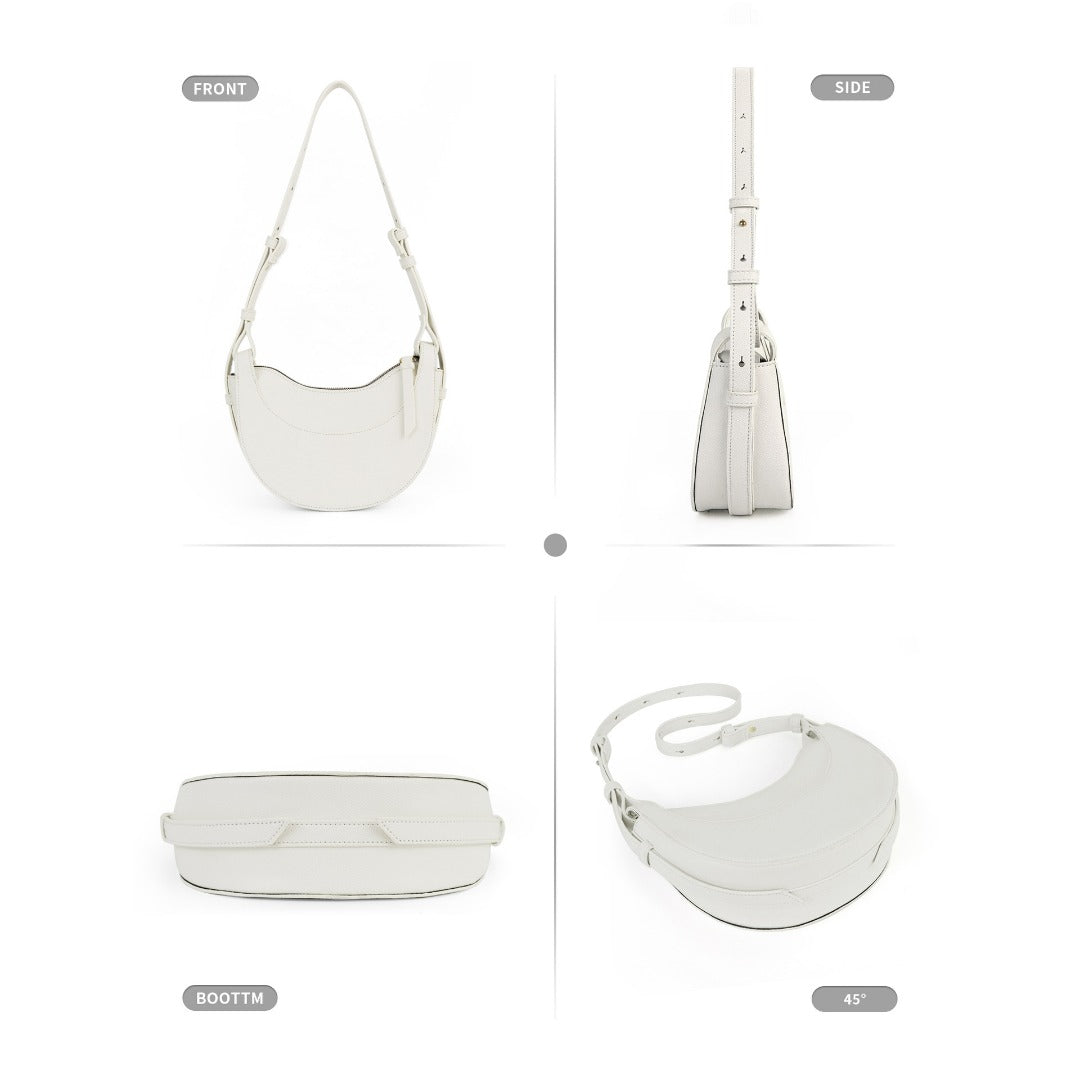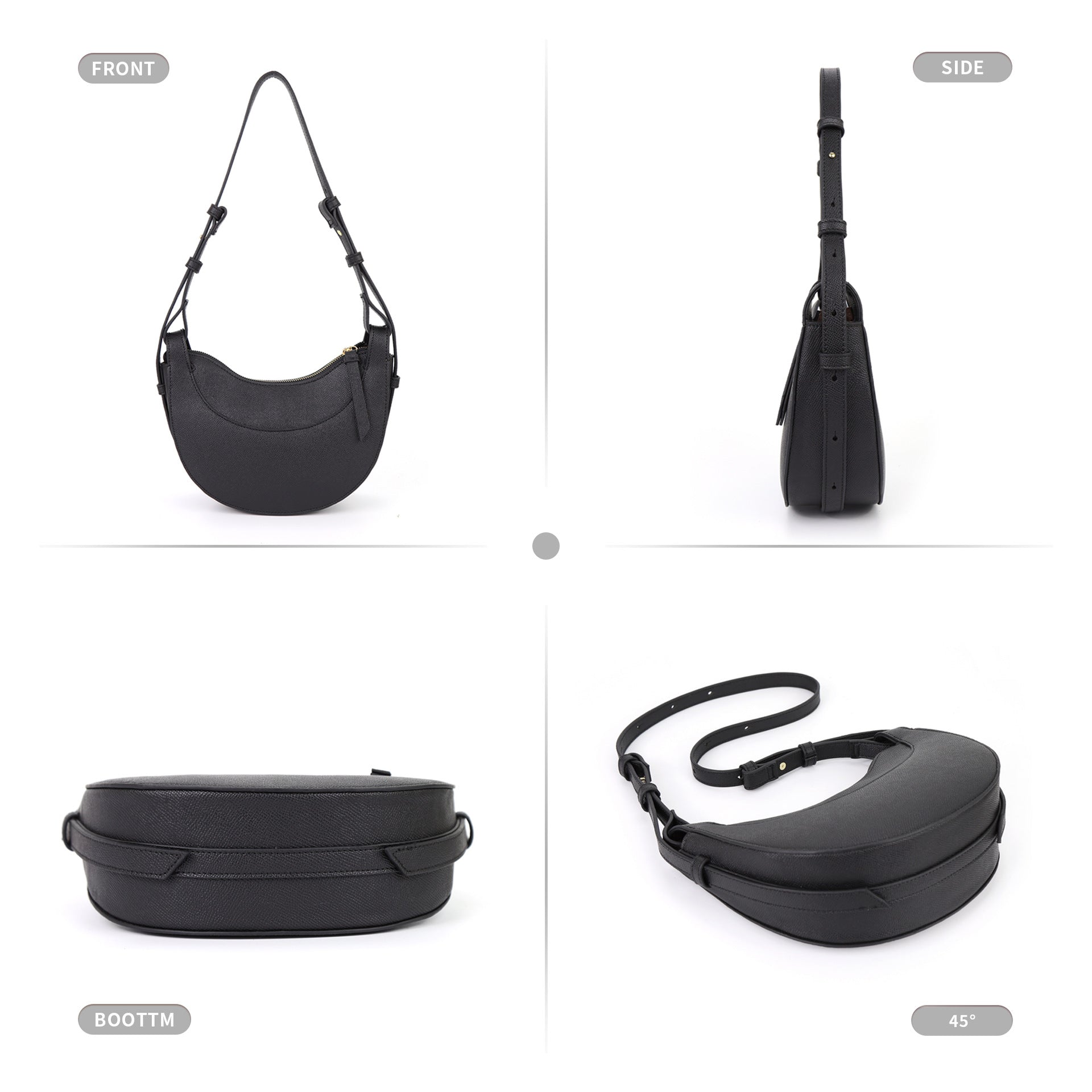 Adjustable Shoulder Strap: Featuring an adjustable shoulder strap, this half moon bag allows you to customize the length to suit your outfit or comfort level. Whether you prefer it slung across your body or carried over your arm, it’s always just right.