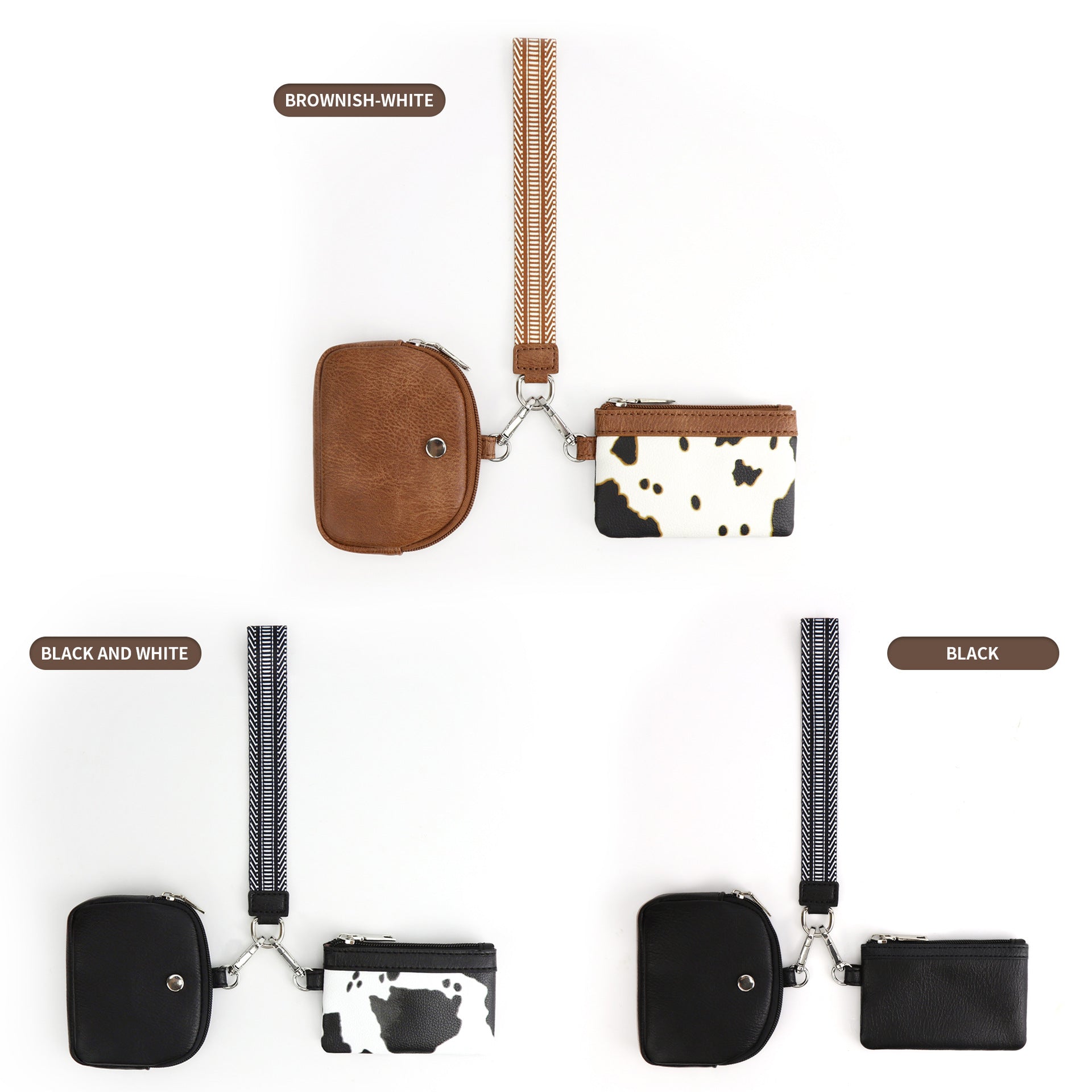 The dual pouch design ensures your coins and cards are neatly separated, while the zip-around closure keeps everything secure. The convenient keychain attachment makes it easy to keep track of your keys, and the adjustable wrist strap provides hands-free convenience. Whether you're running errands or heading out for a night on the town, this wristlet wallet is the perfect companion for all your adventures.