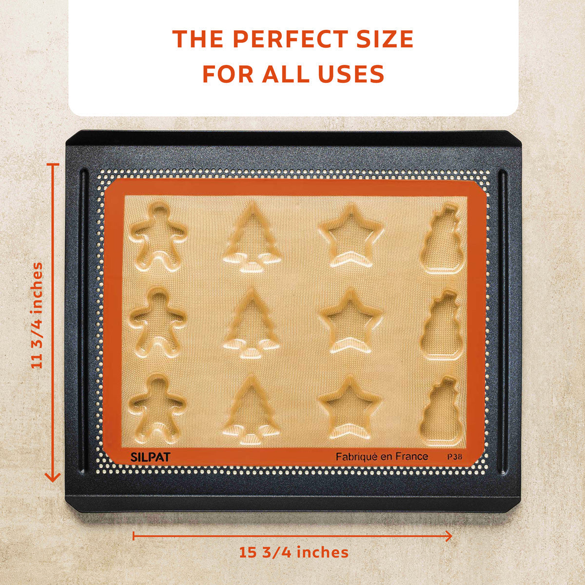 The original non-stick Silpat® Holiday Treats Mold—12 festive cavities for snowmen, gingerbread men, stars, and trees. Durable, reusable, and designed for effortless release every time.