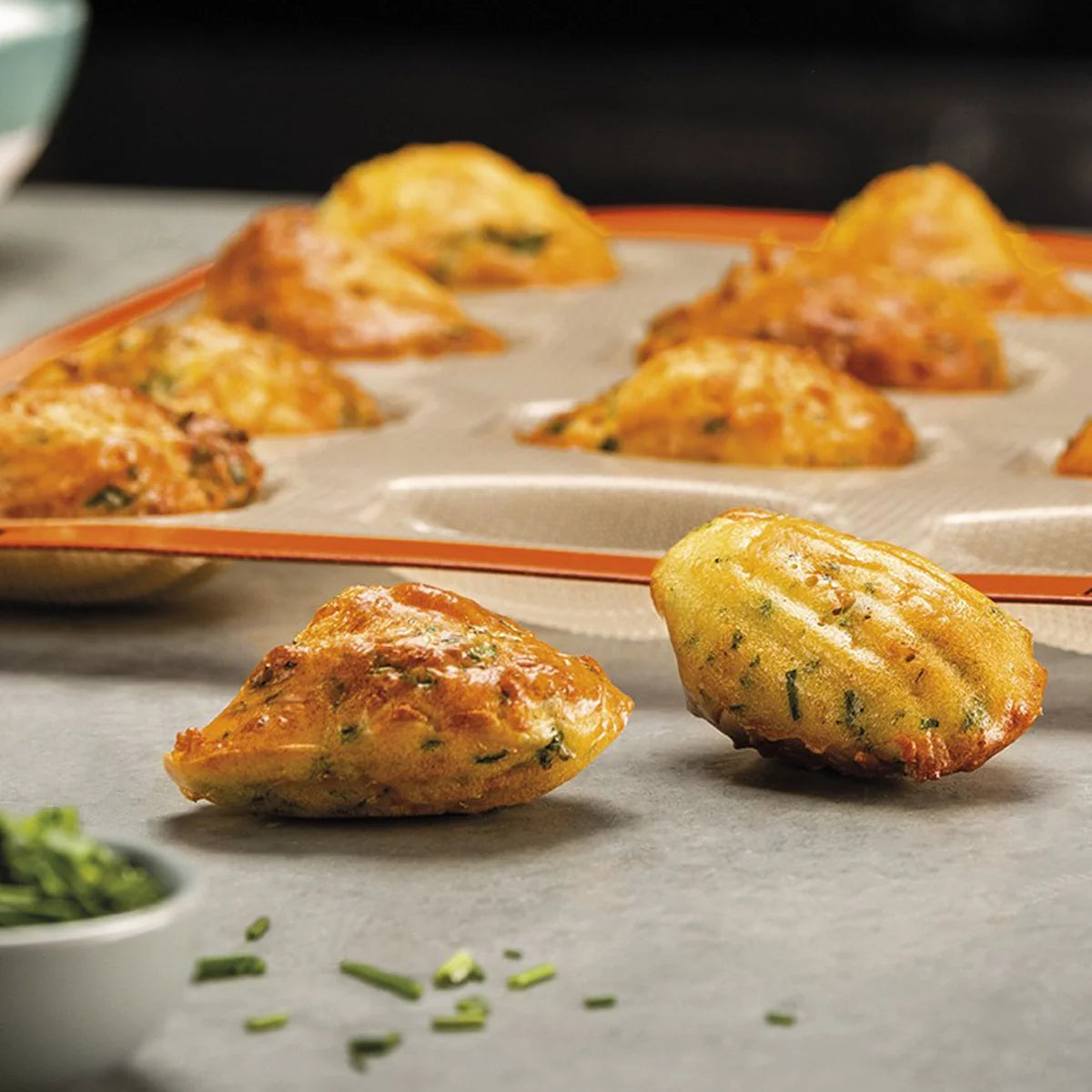 The original non-stick Silpat® Mini Madeleine Mold—28 cavities for perfectly shaped mini madeleines. Durable, reusable, and designed for effortless release every time.