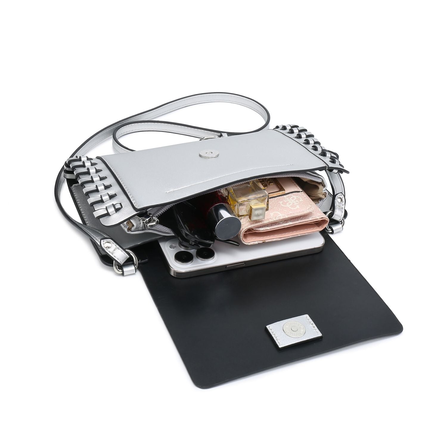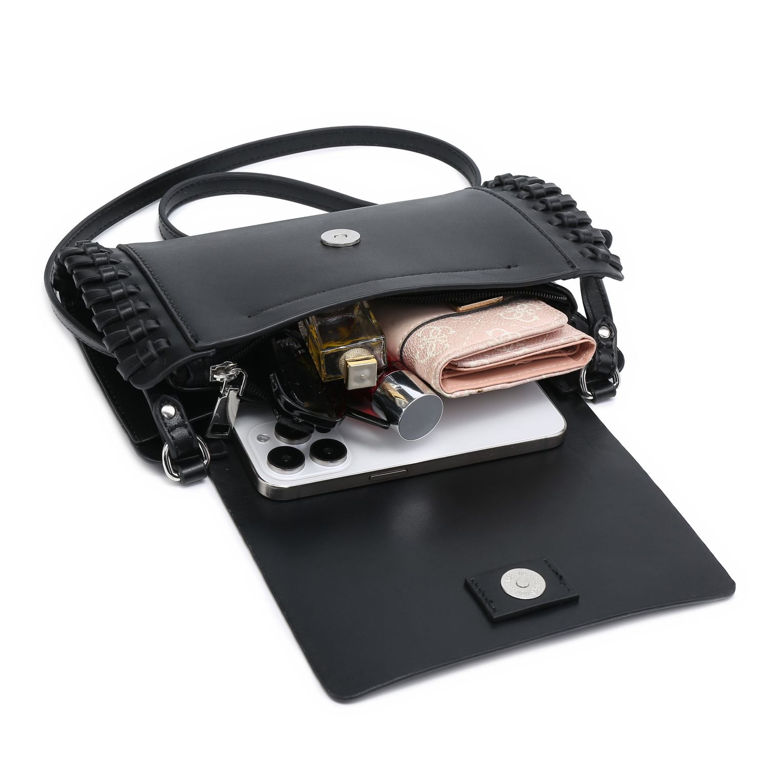 Compact Black Square Purse With Handcrafted Weave detail