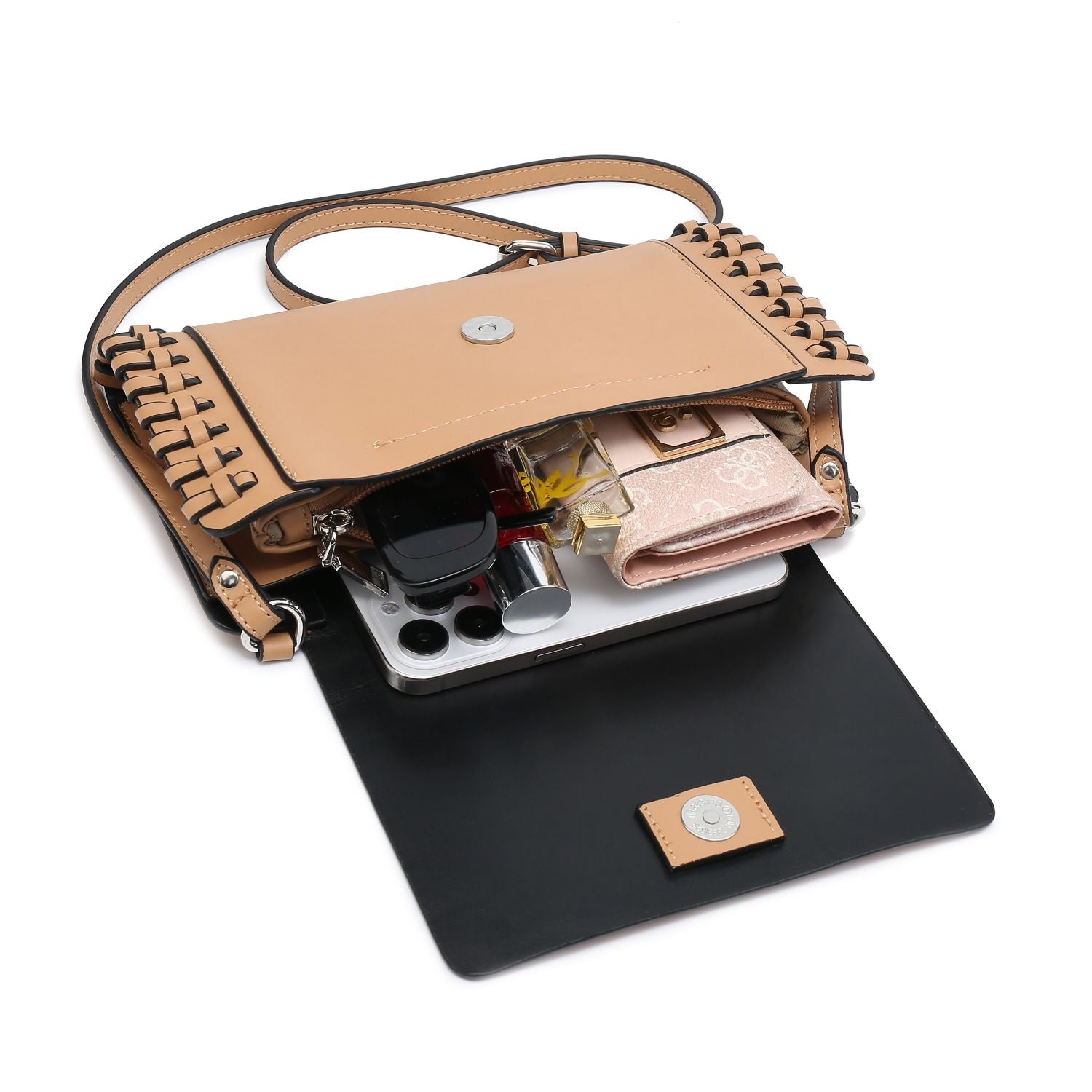 The exterior is made from high-end 100% ecofriendly vegan PU leather, Soft lining material to avoid friction to the phone and causing any damage, and the shoulder bag has a saddle covering the body and zipper to make safer and more stylish; also have a zip pocket behind to protect your most important cash or card