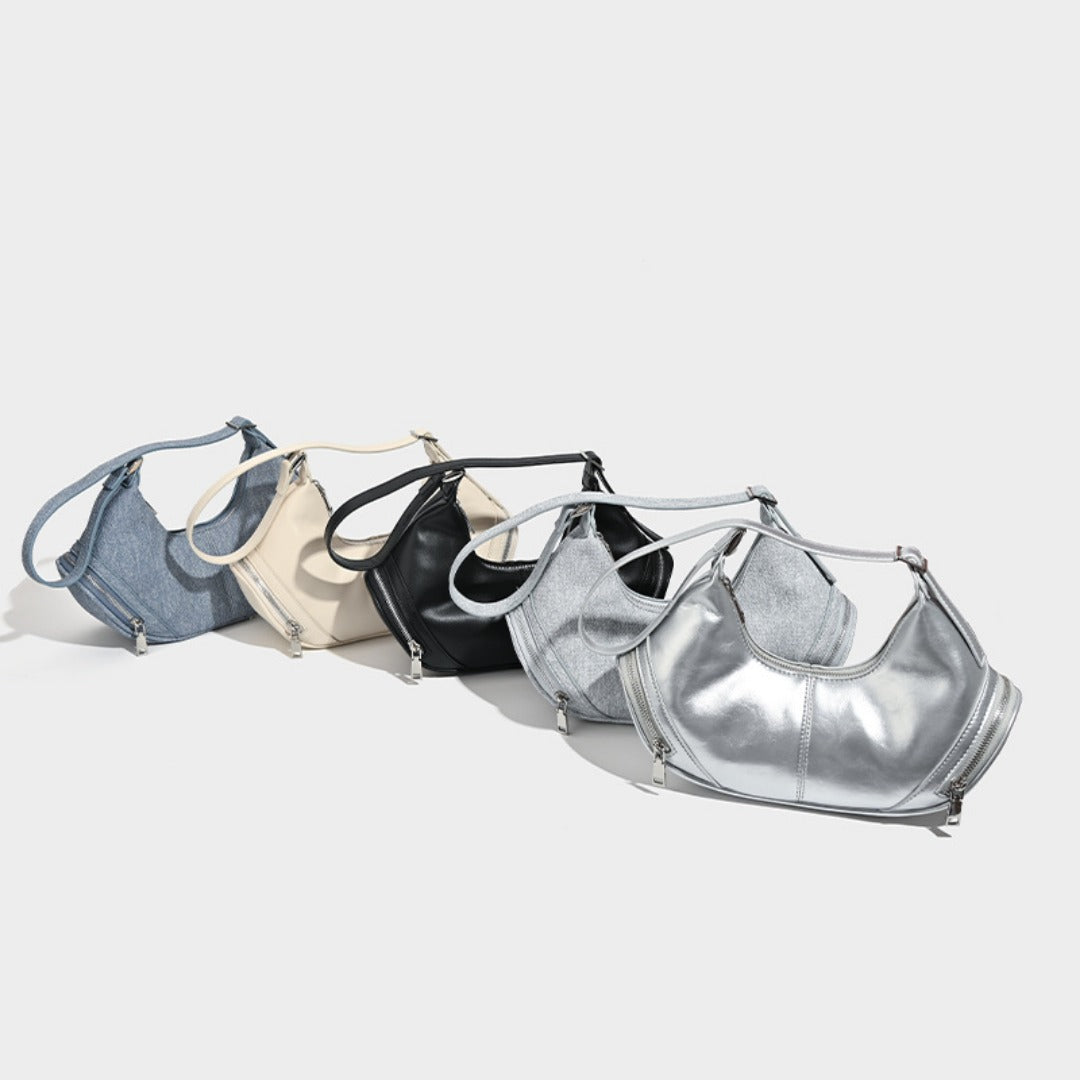Stylish vintage zip pocket locomotive bag, shoulder bag, hobo bag casual, underarm bag