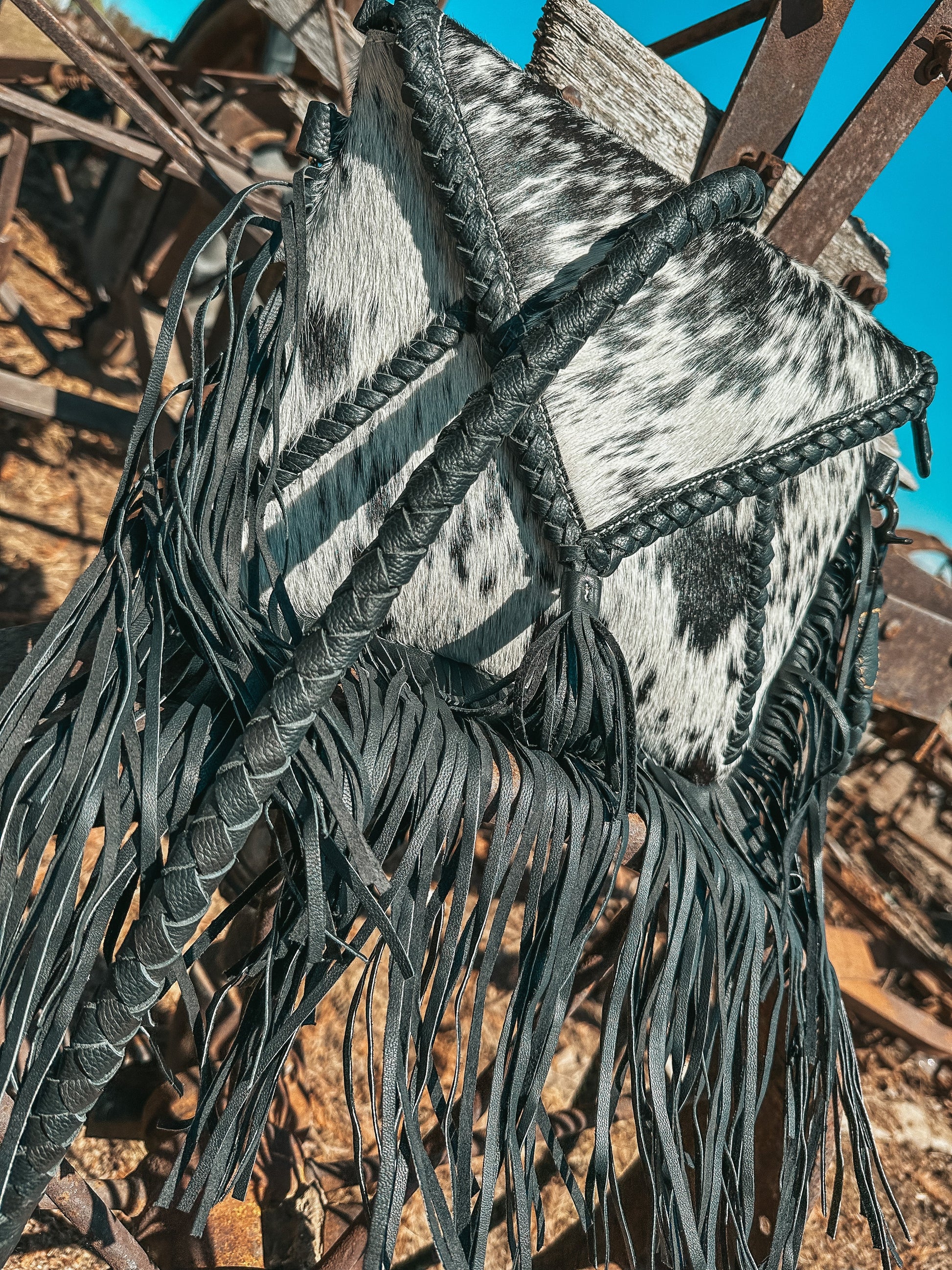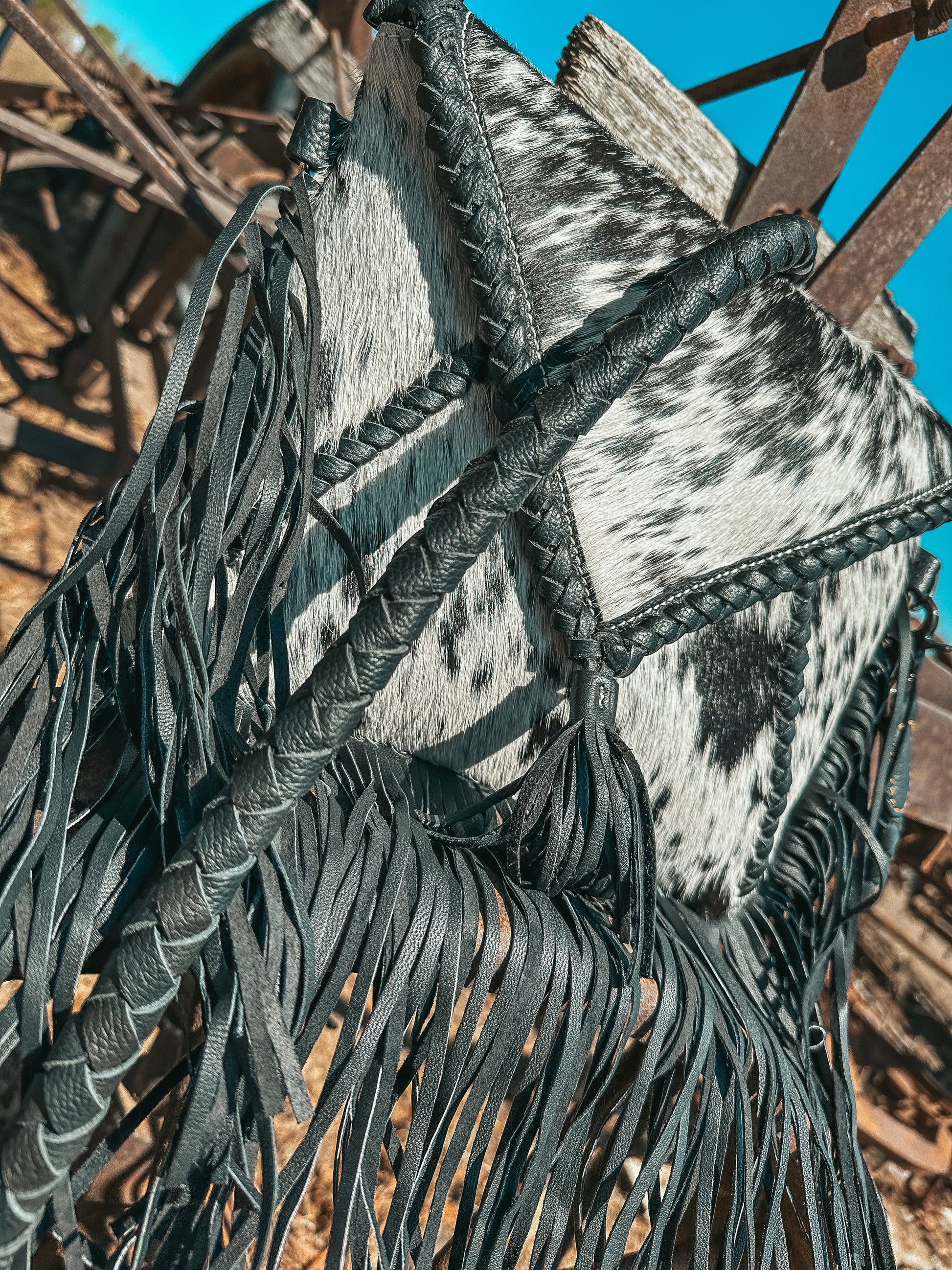 Introducing The Xia, a Haute Southern Hyde by Beth Marie Exclusive. Xia boasts hand woven fringe, beautifully accentuating it’s cowhide body. She comes with two straps!!! Switch between the 35” and the 54.25” for different uses. (Measurements are approximate Please allow for some error)