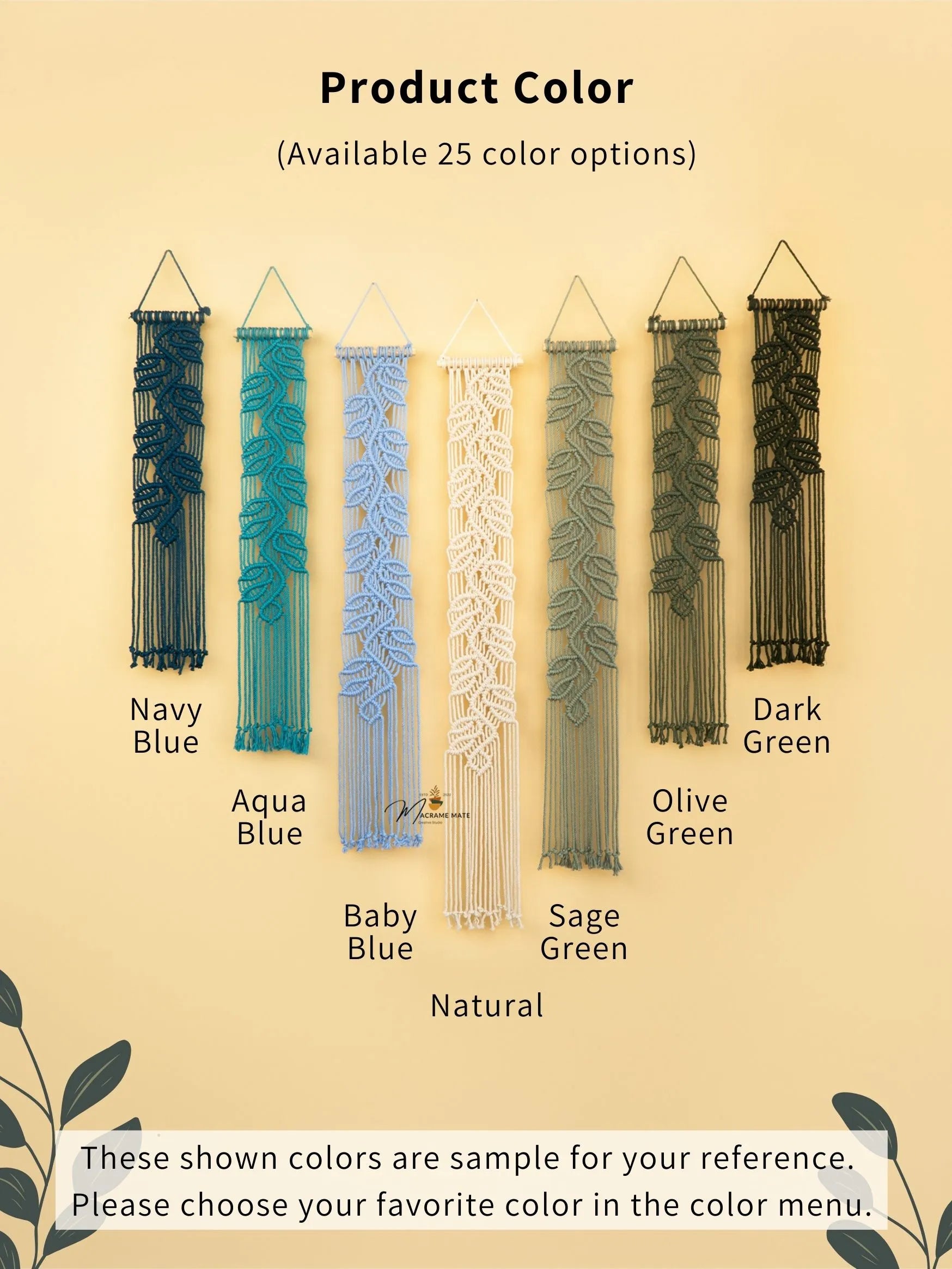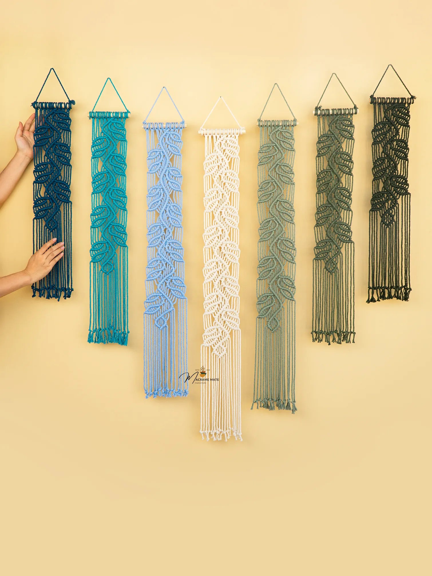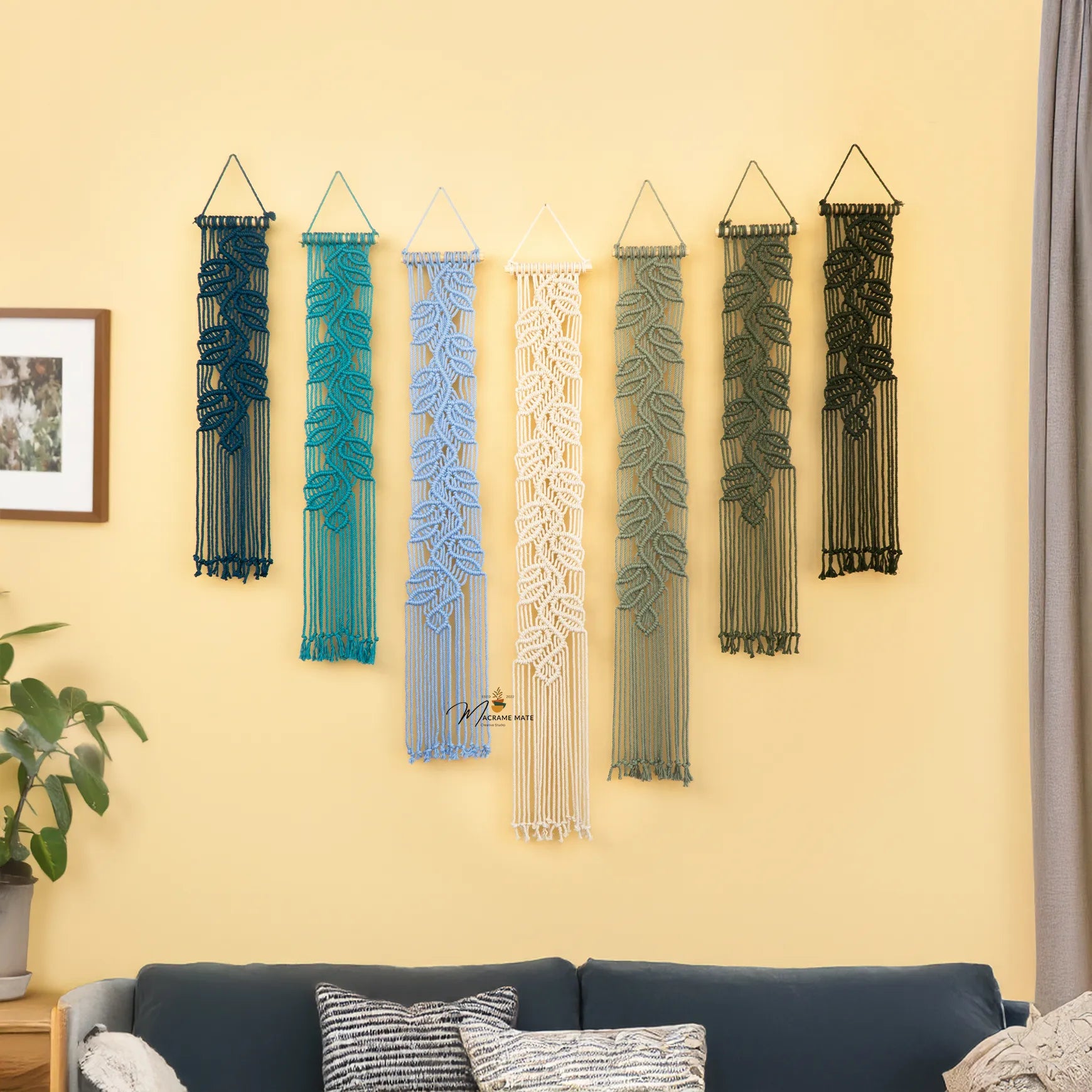 Handcrafted with delicate knots and natural fibers, Vela Blue Green Macrame Wall Hangings exude elegance and tranquility. Its vertical layout creates a striking silhouette, perfect for adding texture and depth to any wall. Inspired by the calm of nighttime, this piece features subtle neutral tones that complement boho, minimalist, or modern decor styles effortlessly.