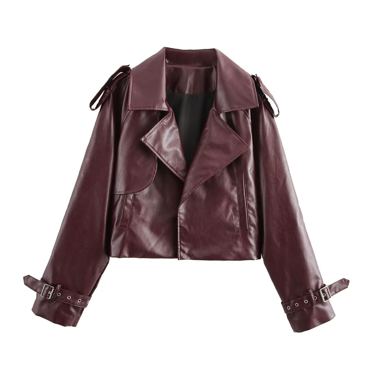 A classic faux leather biker jacket that never goes out of style. This lapel leather coat is a versatile wardrobe staple for adding an instant edge to any outfit.