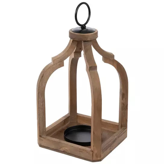 Light up your entryway in modern style by using this Wood & Metal Lantern. This lantern features a brown wood frame with a black metal handle at the top. In the middle, there is a black metal plate that is the perfect size for an LED pillar candle. Create a whimsical centerpiece with the help of this lantern!